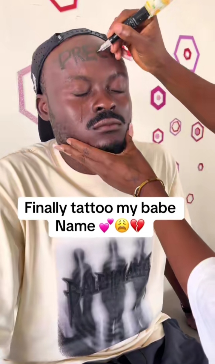 Love wins again as a Nigerian man goes all out to tattoo his girlfriend’s name…