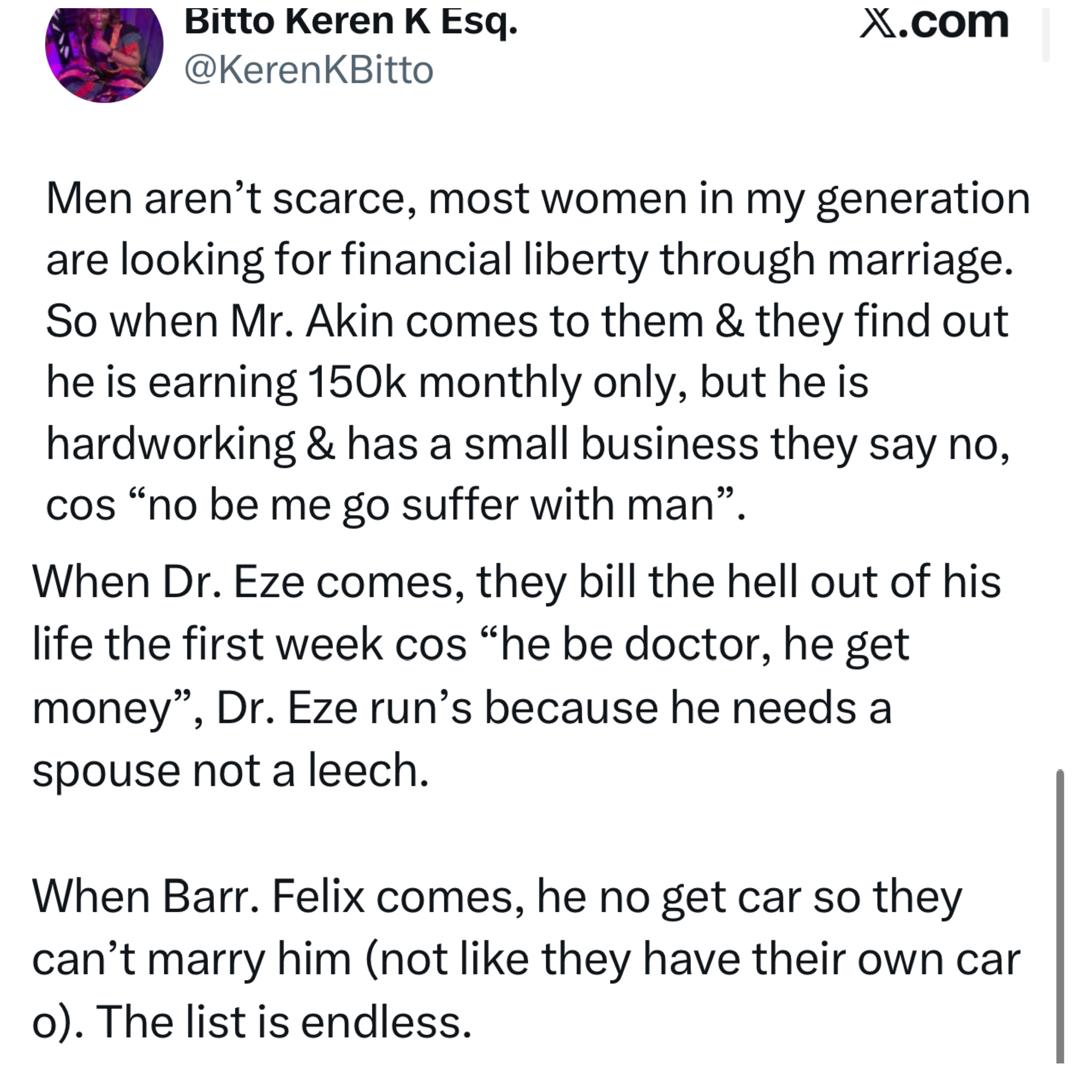 Most Women Are Looking For Financial Liberty Through Marriage- Nigerian Lawyer Claims